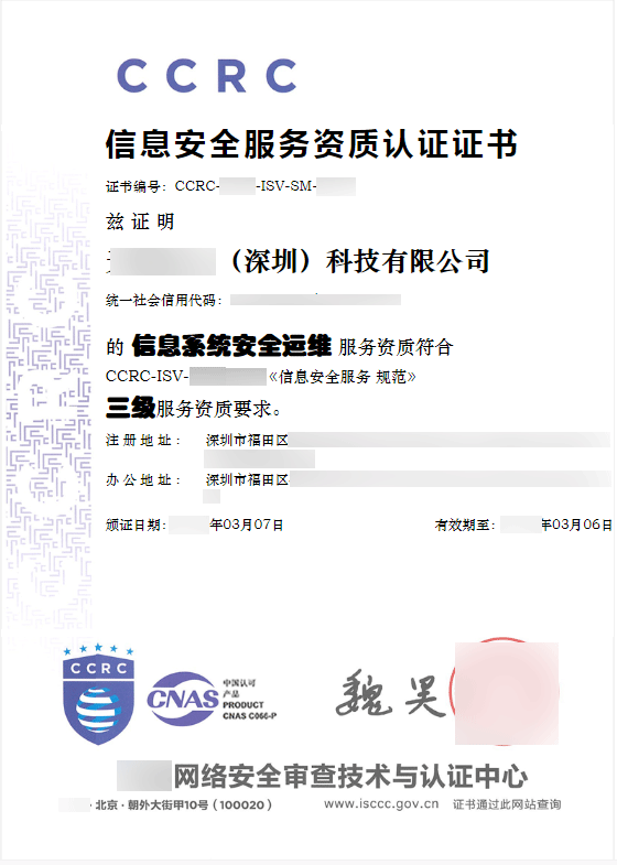 天磊咨询办理信息安全服务资质(CCRC),4-6个月拿证!