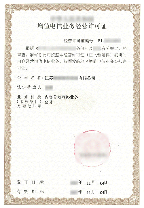 资质全称:第一类增值电信业务许可证-内容分发网络业务