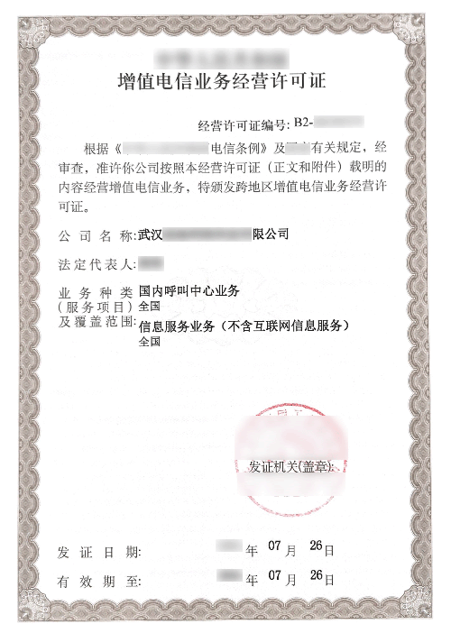 • 资质全称:第二类增值电信业务许可证-国内呼叫中心业务