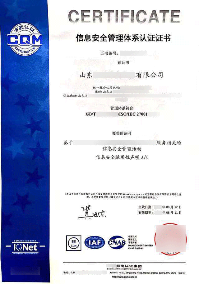 有效期限:3年(每年进行监督审核, 3年到期后需重新认证)