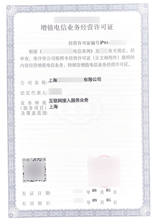• 资质全称:第一类增值电信业务经营许可证——互联网接入服务业务