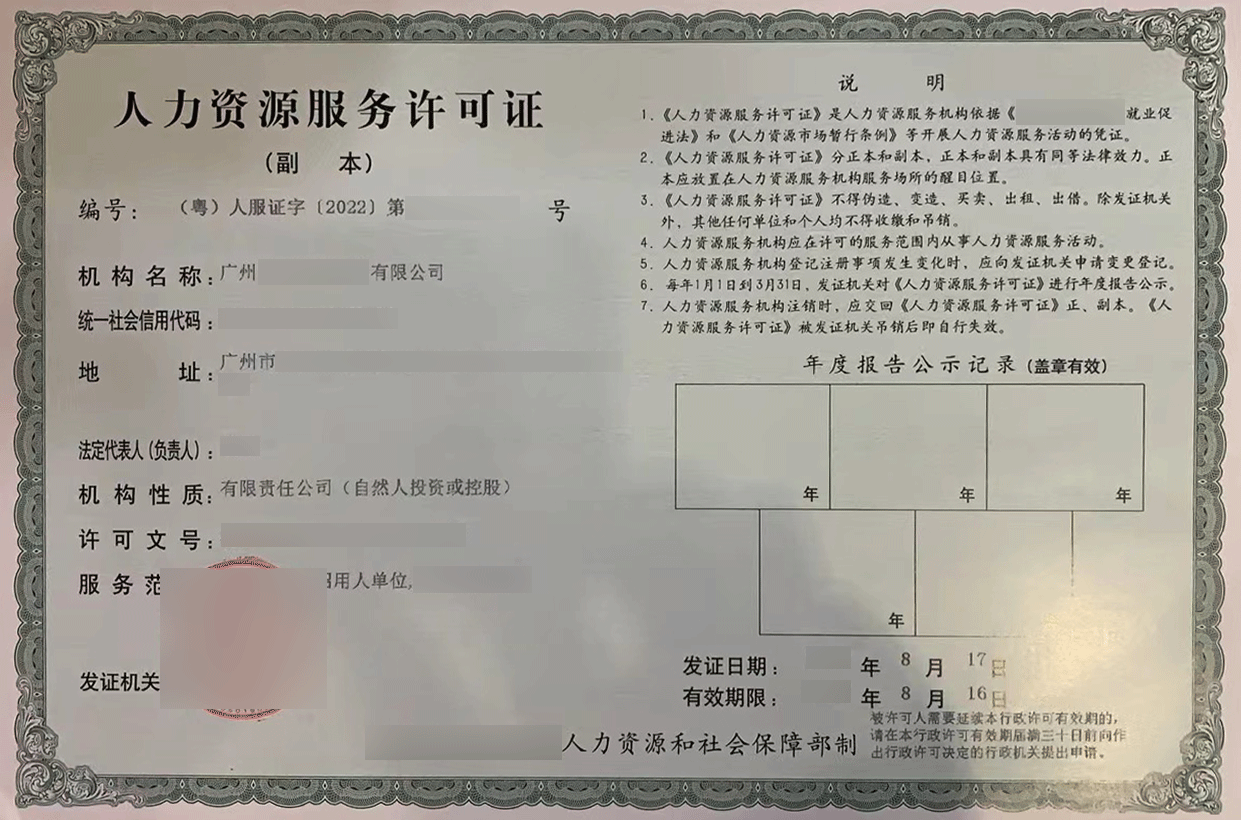 • 资质全称:人力资源服务许可证