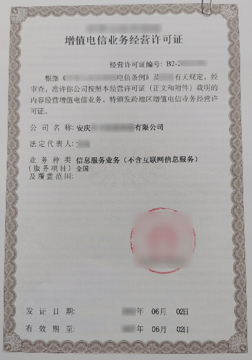 • 资质全称:第二类增值电信业务许可证-信息服务业务(不含互联网信息服务)