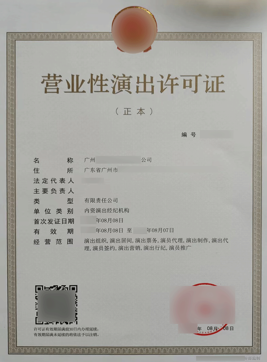 • 资质全称:营业性演出许可证
